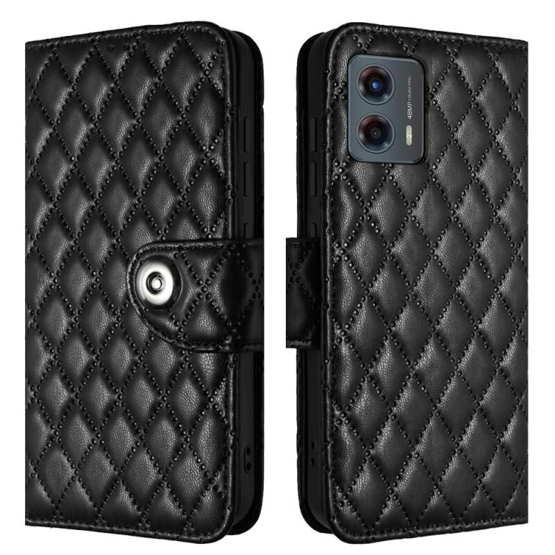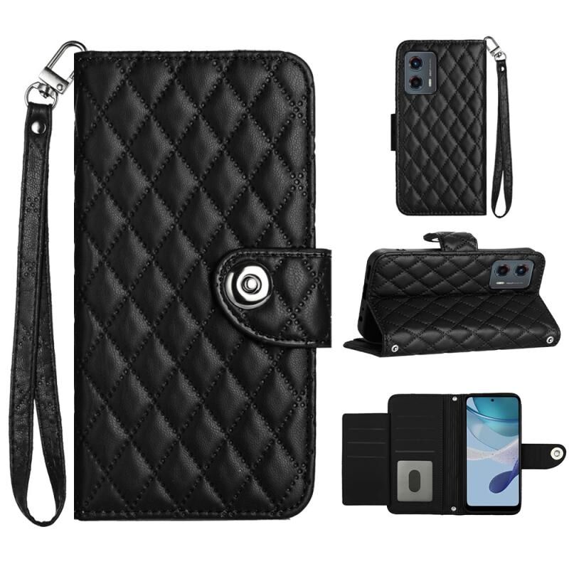 Για Motorola Moto G 5G 2023 Rhombic Texture Flip δερμάτινη θήκη τηλεφώνου με κορδόνι (Μαύρο)