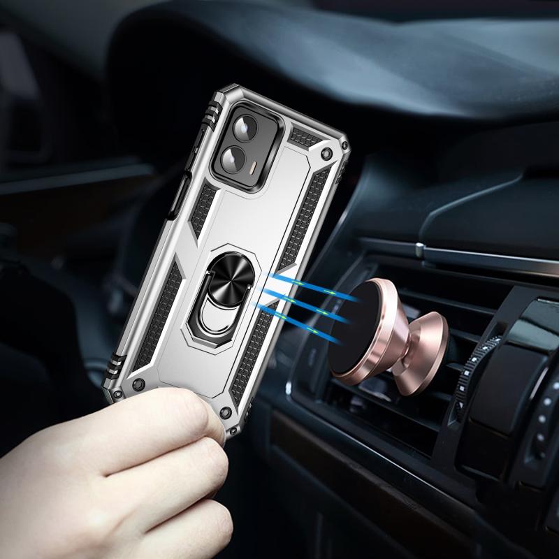 Θήκη κινητού τηλεφώνου για Motorola Moto G 5G 2023, ανθεκτική σε κρούσεις, από TPU + PC με βάση στήριξης (Ασημί)