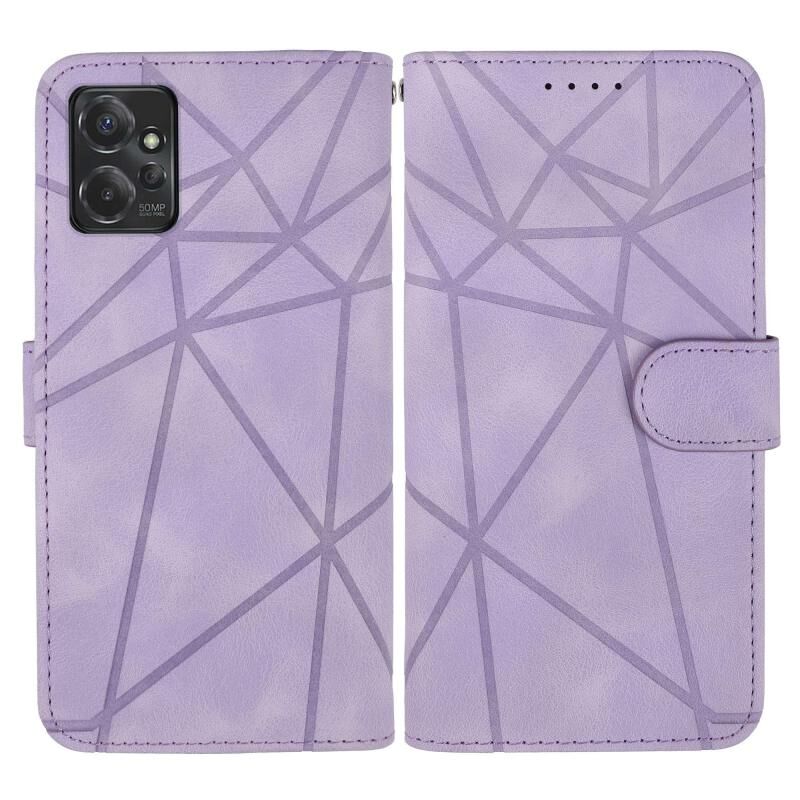 Για Motorola Moto G 5G 2023 Skin Feel Γεωμετρικές γραμμές δερμάτινη θήκη τηλεφώνου (μωβ)