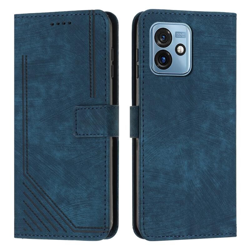 Για Motorola Moto G 5G 2023 Skin Feel Stripe Pattern Δερμάτινη θήκη τηλεφώνου με κορδόνι (Μπλε)