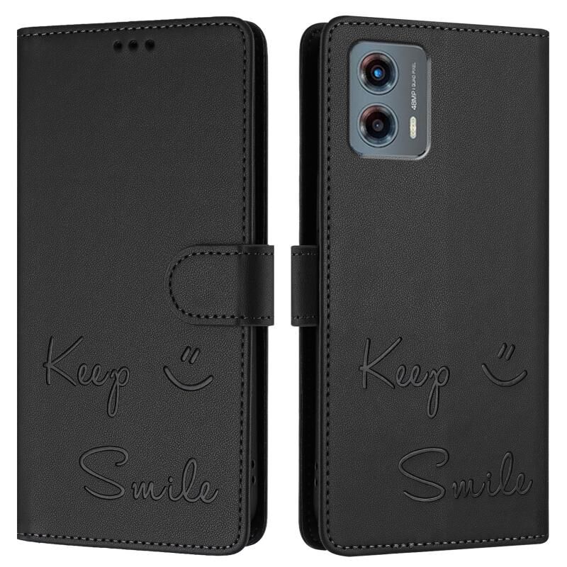 Θήκη τηλεφώνου δερμάτινη με ανάγλυφο χαμόγελο και RFID για Motorola Moto G 5G 2023 (Μέντας Πράσινο)
