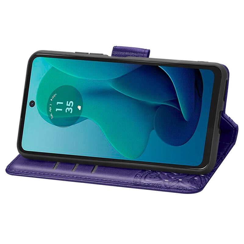 Θήκη τηλεφώνου δερμάτινη ανάγλυφη με σχέδιο πεταλούδας και λουλουδιών για Motorola Moto G 5G 2024 (Μαύρο)