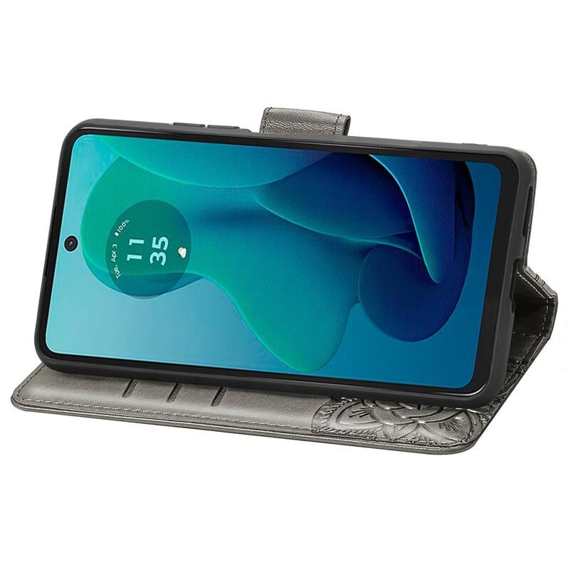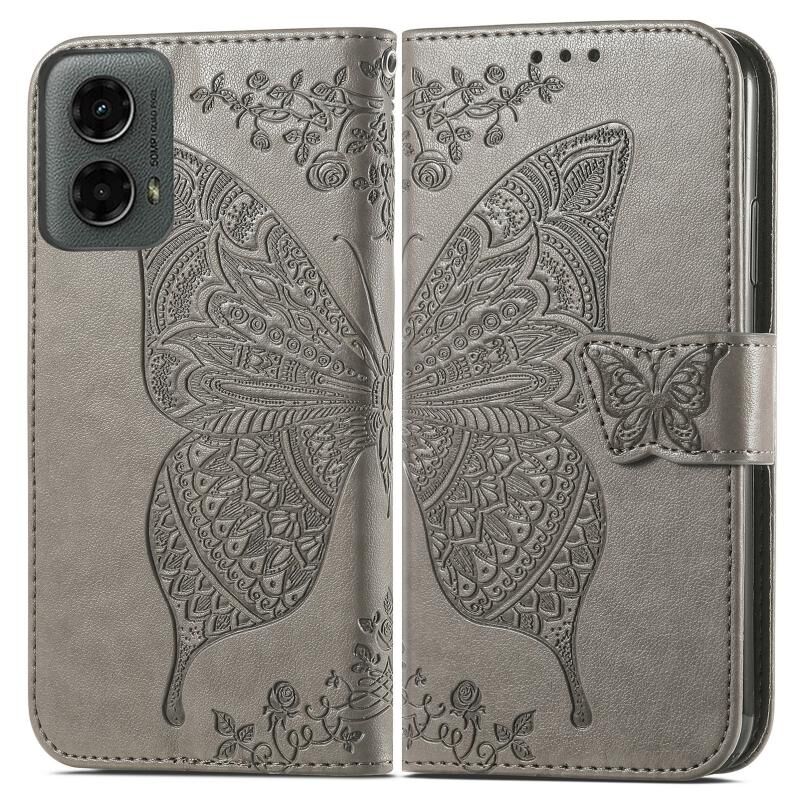 Θήκη τηλεφώνου δερμάτινη ανάγλυφη με σχέδιο πεταλούδας και λουλουδιών για Motorola Moto G 5G 2024 (Μαύρο)