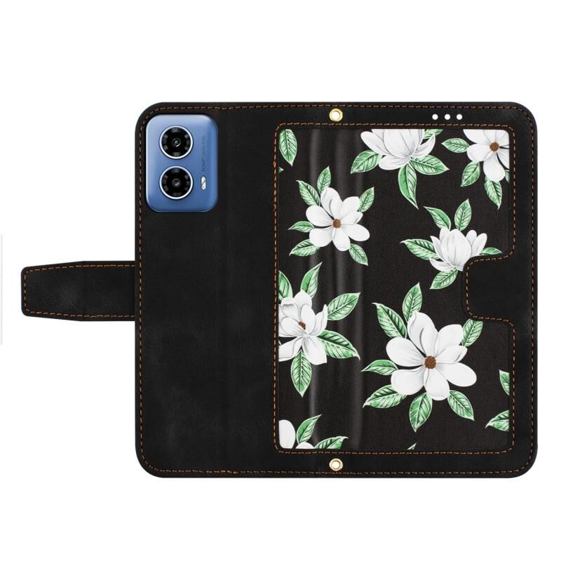 Θήκη τηλεφώνου από δέρμα με λουλουδάτο σχέδιο για Motorola Moto G 5G 2024 με κορδόνι (Ανοιχτό Μπλε)