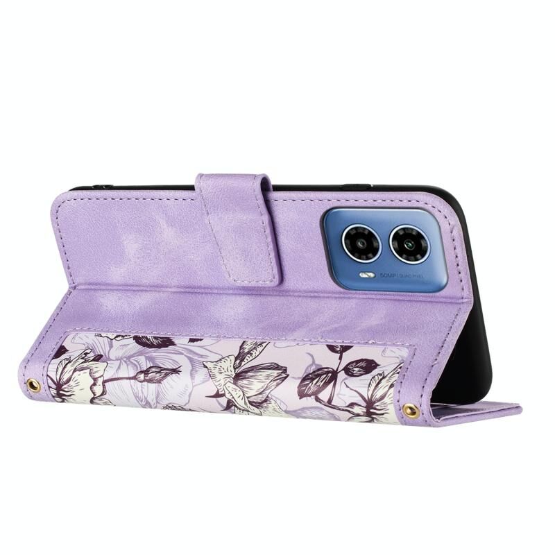 Θήκη τηλεφώνου από δέρμα με λουλουδάτο σχέδιο για Motorola Moto G 5G 2024 με κορδόνι (Ανοιχτό Μπλε)