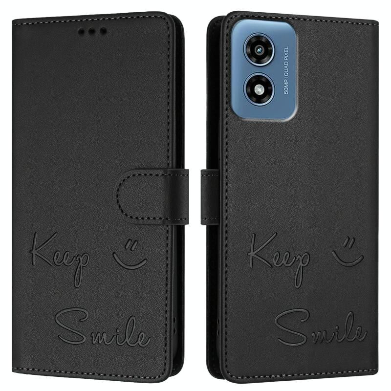 Θήκη τηλεφώνου δερμάτινη με ανάγλυφο χαμόγελο και RFID για Motorola Moto G 5G 2024 Global (Μέντας Πράσινο)