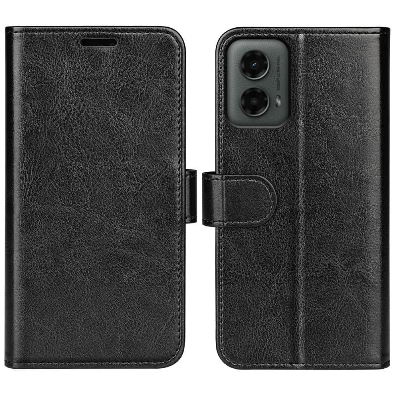 Θήκη τηλεφώνου δερμάτινη οριζόντιας αναδίπλωσης με υφή για Motorola Moto G 5G 2024 R64 (Μαύρο)