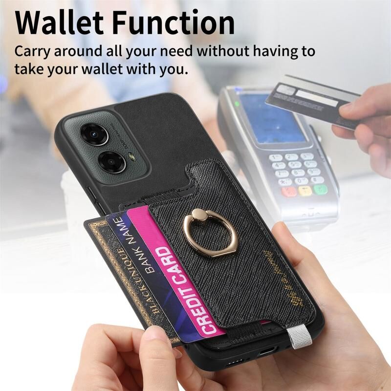 Για Motorola Moto G 5G 2024 Θήκη Δέρμα με Λαβή, Κάρτες & MagSafe (Μαύρο)