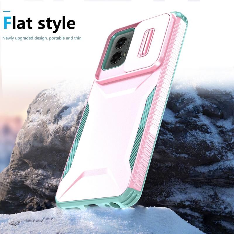 Για Motorola Moto G 5G 2024 Συρόμενη θήκη τηλεφώνου Camshield (ροζ + γκρι-πράσινο)
