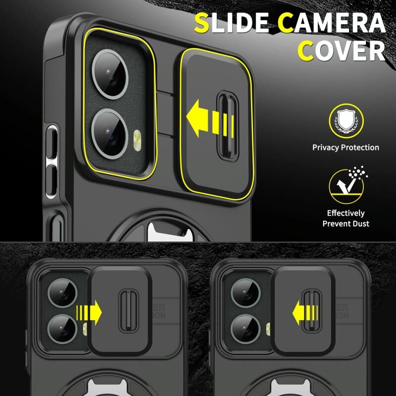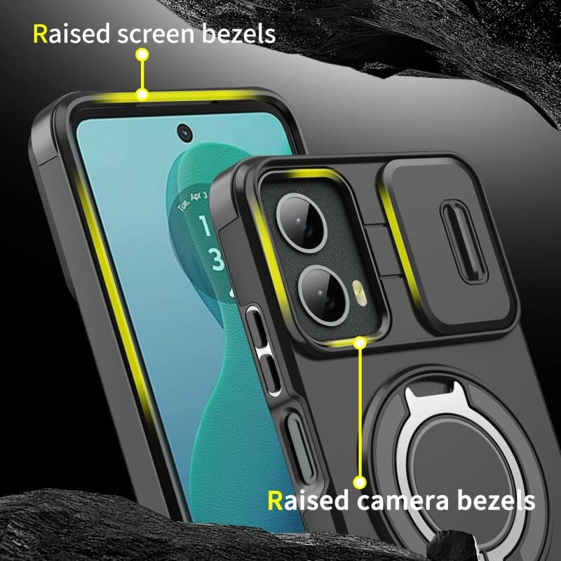 Θήκη τηλεφώνου για Motorola Moto G 5G 2024 με ολισθαίνουσα προστασία κάμερας και δακτύλιο στήριξης (Μαύρο)