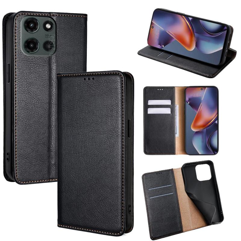 Θήκη τηλεφώνου από δέρμα με μαγνητική αφή, σε γυαλιστερό μαύρο χρώμα λαδιού, για Motorola Moto G 5G 2025 (Μαύρο)