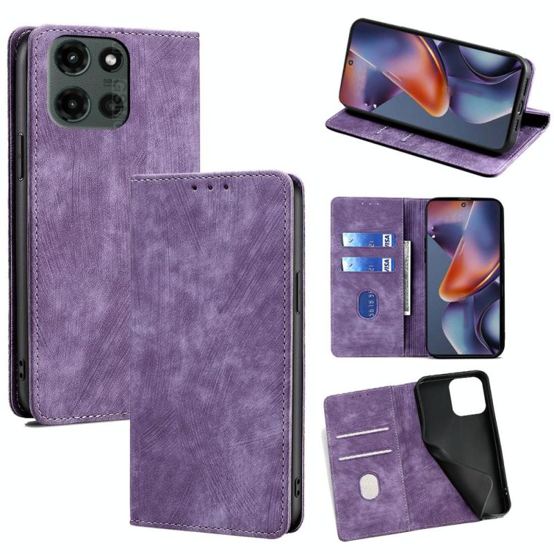 For Motorola Moto G 5G 2025 RFID Anti-theft Brush Magnetic Leather Phone Case(Purple)