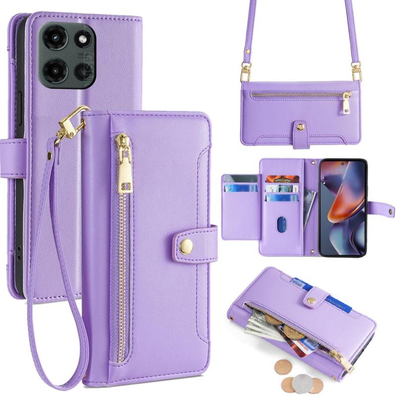 For Motorola Moto G 5G 2025 Sheep Texture Cross-body Zipper Wallet Leather Phone Case(Purple)