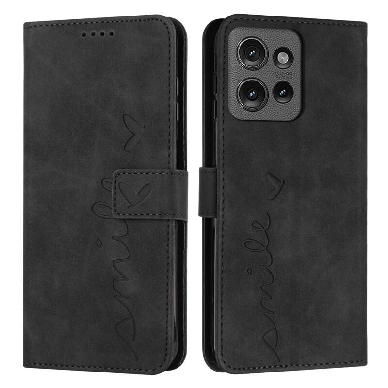 Για Motorola Moto G 5G 2025 Skin Feel Heart ανάγλυφη δερμάτινη θήκη τηλεφώνου με μακρύ κορδόνι (μαύρο)