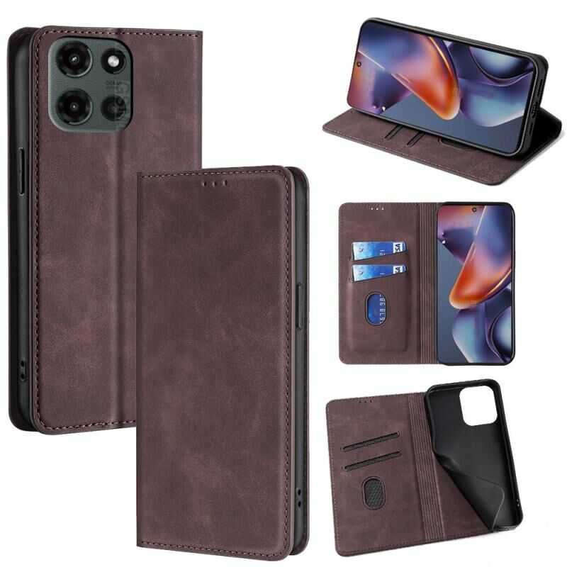 Θήκη κινητού τηλεφώνου από δέρμα με μαγνητική αίσθηση για Motorola Moto G 5G 2025 (Σκούρο Καφέ)