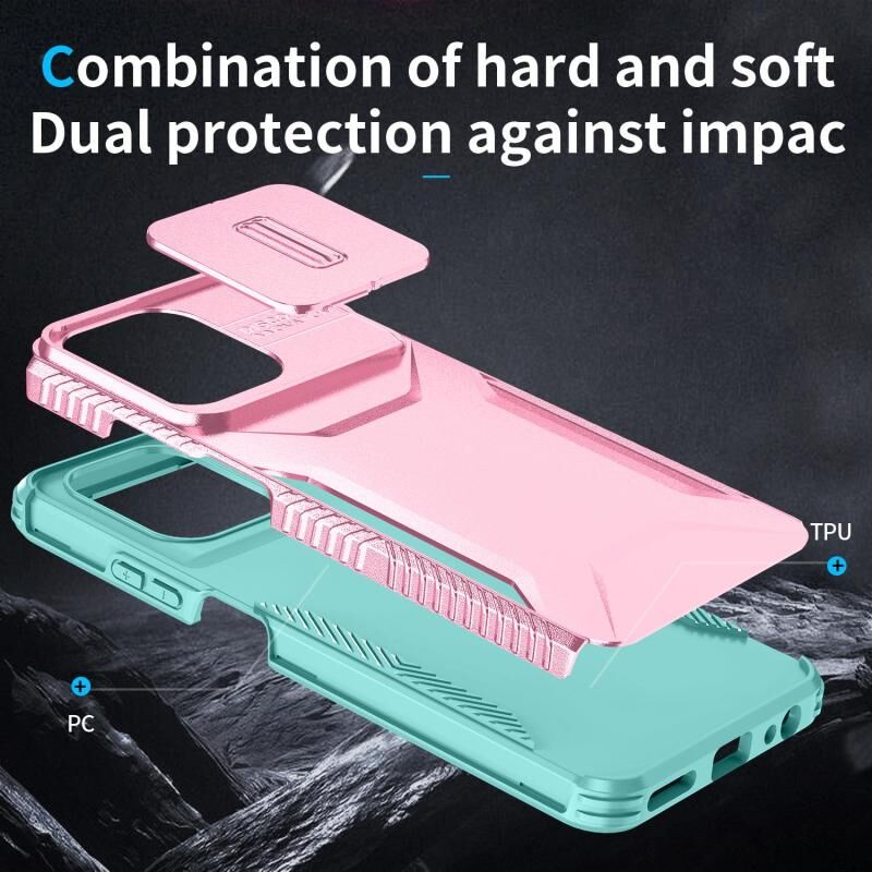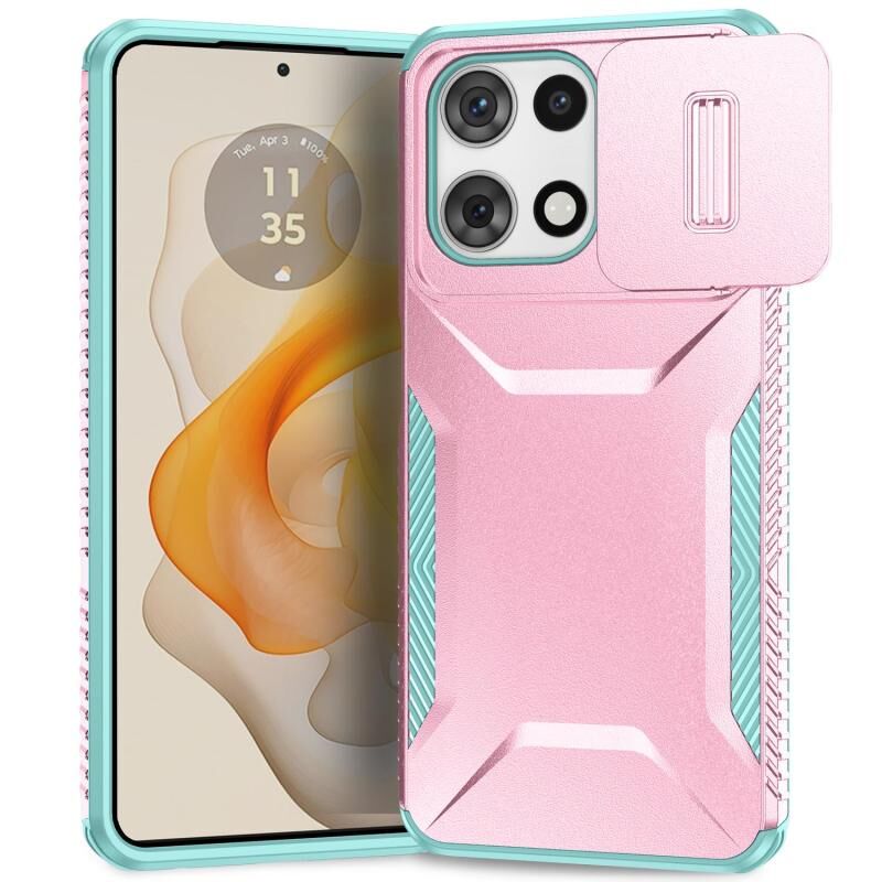 Θήκη τηλεφώνου για Motorola Moto G 5G 2025 με συρόμενο προστατευτικό κάμερας (Pink + Grey Green)