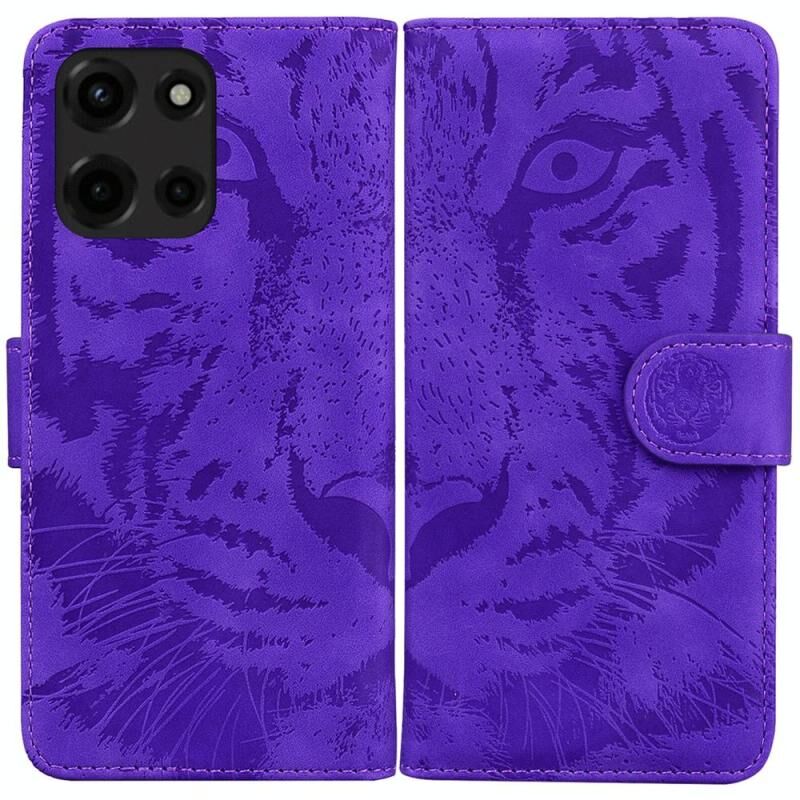 Θήκη τηλεφώνου δερμάτινη με ανάγλυφο μοτίβο τίγρης για Motorola Moto G 5G 2025 (Μαύρο)