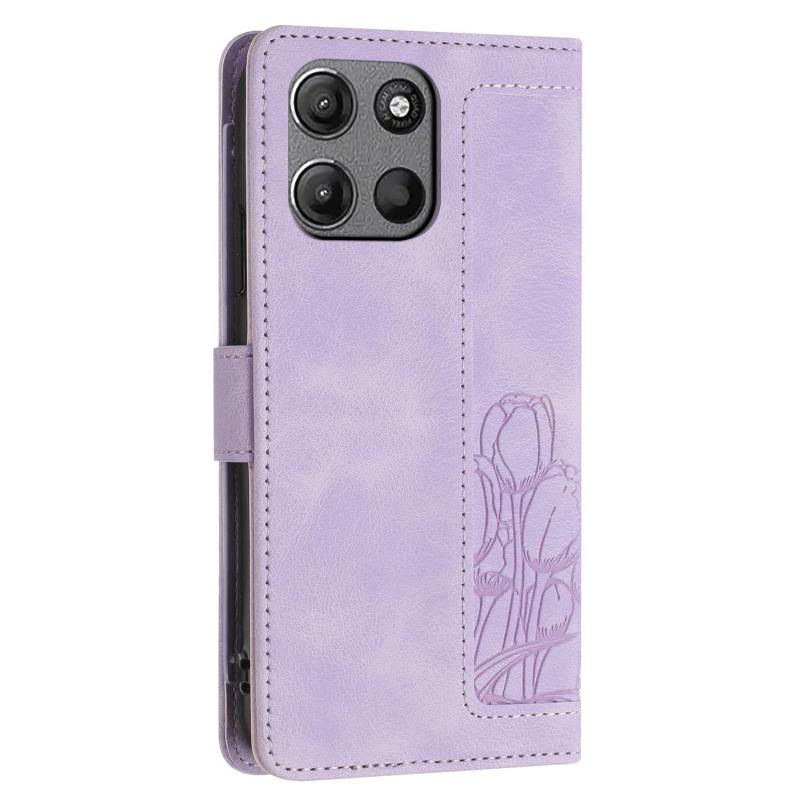 For Motorola Moto G 5G 2025 Tulips Embossed Leather Phone Case with Lanyard(Purple)