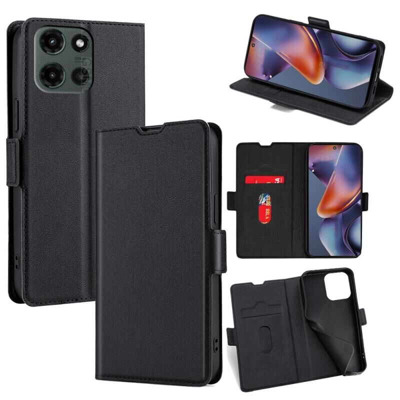 Θήκη τηλεφώνου δέρμα οριζόντιας αναδίπλωσης με πλευρική αγκράφα τάσης, εξαιρετικά λεπτή για Motorola Moto G 5G 2025 (Μαύρο)
