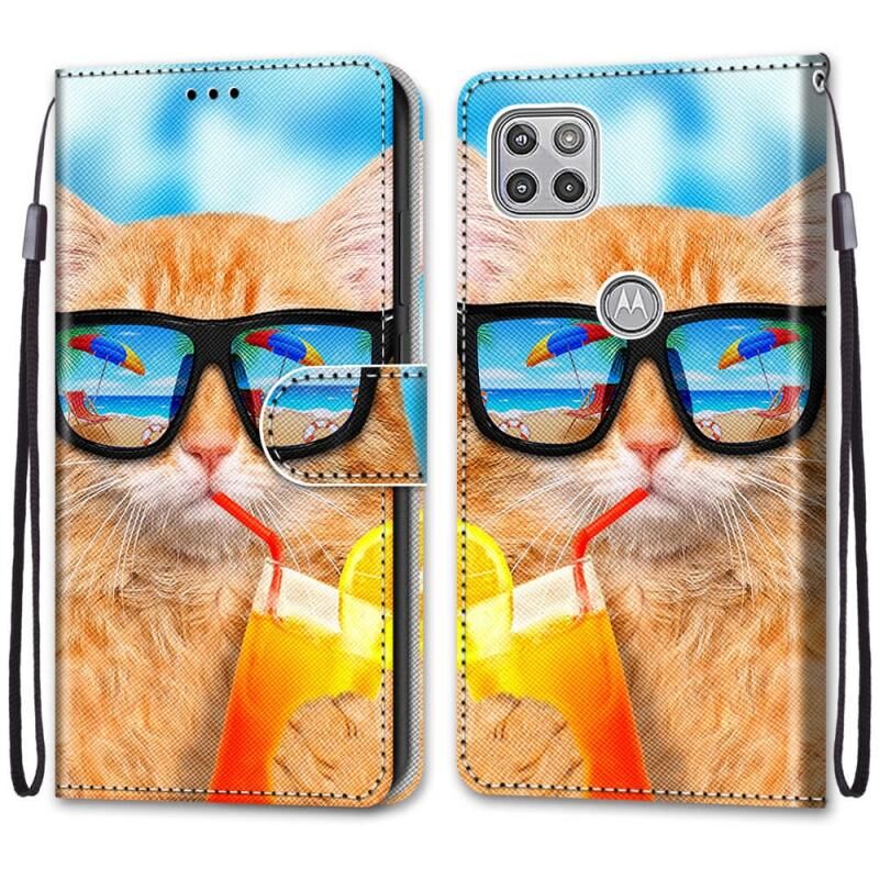 Θήκη για Motorola Moto G 5G με σχέδιο σταυρωτής υφής, οριζόντιο άνοιγμα, από δερματίνη PU με βάση για στήριξη, θήκες για κάρτες, πορτοφόλι και κορδόνι (Γάτα που πίνει αναψυκτικό)