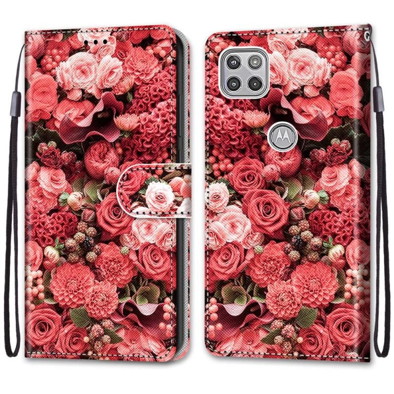 Θήκη για Motorola Moto G 5G με σχέδιο ζωγραφικής, υφή σταυρού, οριζόντιο άνοιγμα, από δερματίνη PU με βάση στήριξης, θήκες για κάρτες, πορτοφόλι & λουρί (Ροζ Λουλούδι, Γέφυρα του Πύργου).
