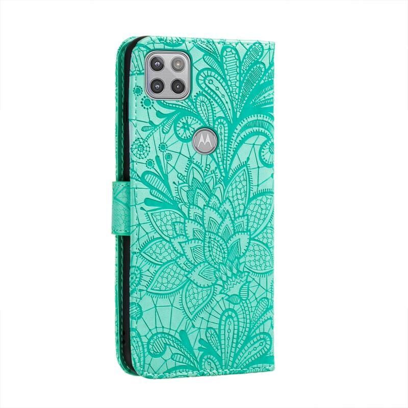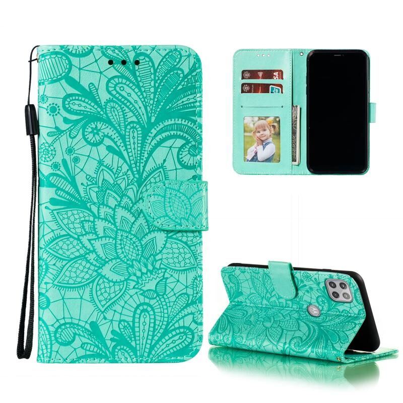 Για Motorola Moto G 5G Lace Flower ανάγλυφο μοτίβο οριζόντια Flip δερμάτινη θήκη με θήκη & υποδοχές για κάρτες & πορτοφόλι & πλαίσιο φωτογραφιών (πράσινο)