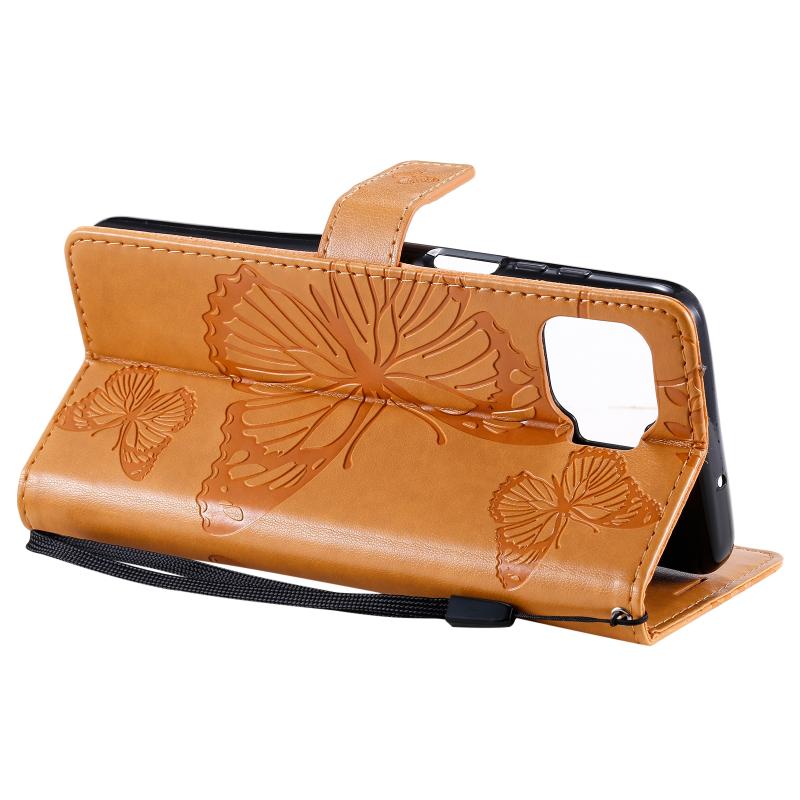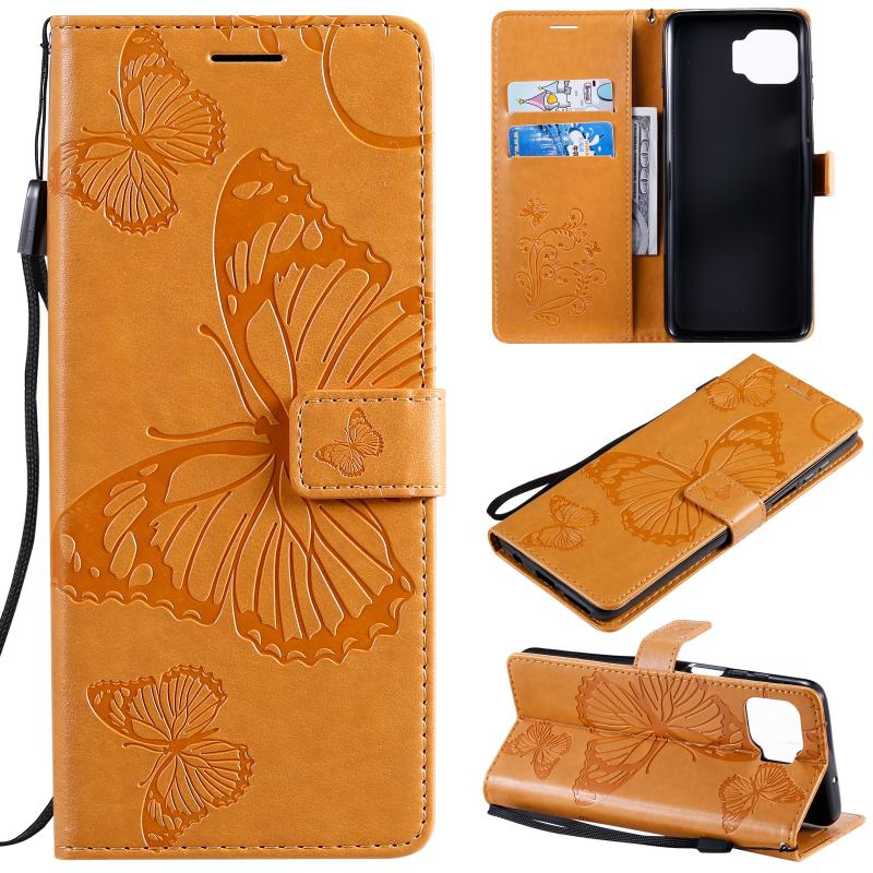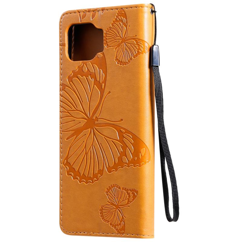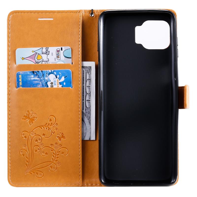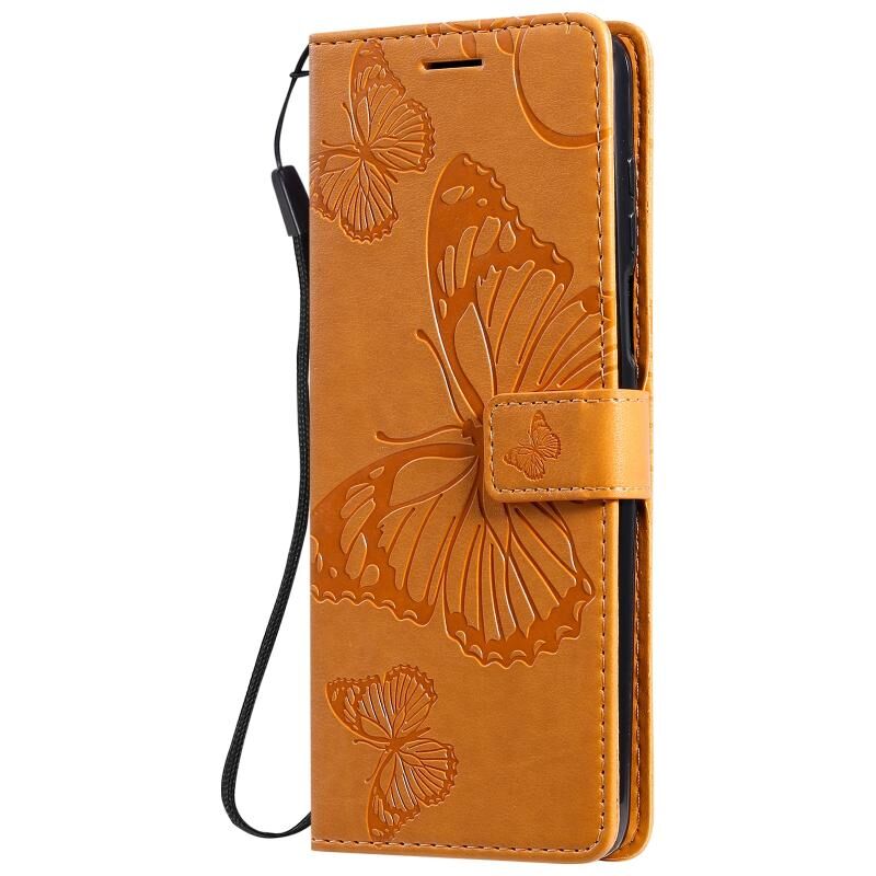 Θήκη δέρματος οριζόντιας αναδίπλωσης με ανάγλυφο σχέδιο 3D πεταλούδων για Motorola Moto G 5G Plus, με βάση & υποδοχή κάρτας & πορτοφόλι (Χρυσό Ρόδι)