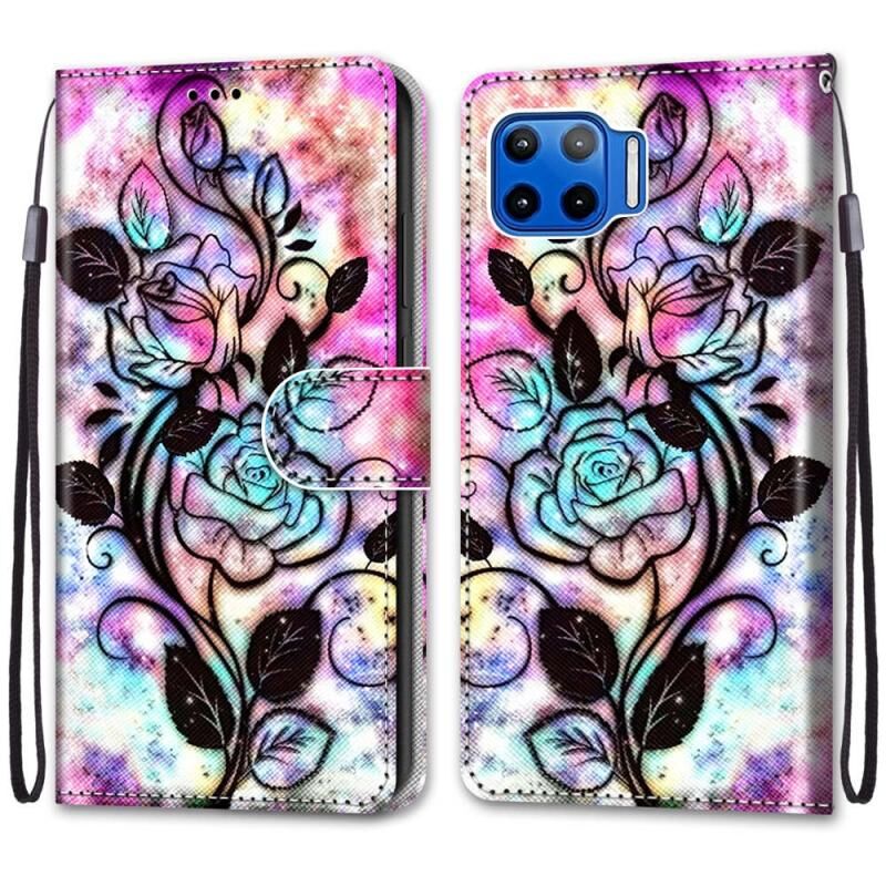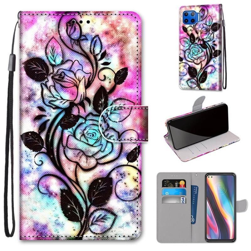 Θήκη για Motorola Moto G 5G Plus με πολύχρωμο σχέδιο, υφή σταυρού, οριζόντιο άνοιγμα, από δερματίνη PU με βάση στήριξης, θήκες για κάρτες, πορτοφόλι & λουρί (Ροζ Λουλούδια - Γέφυρα του Πύργου). (Κόκκινο)