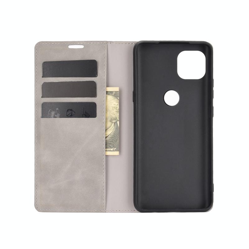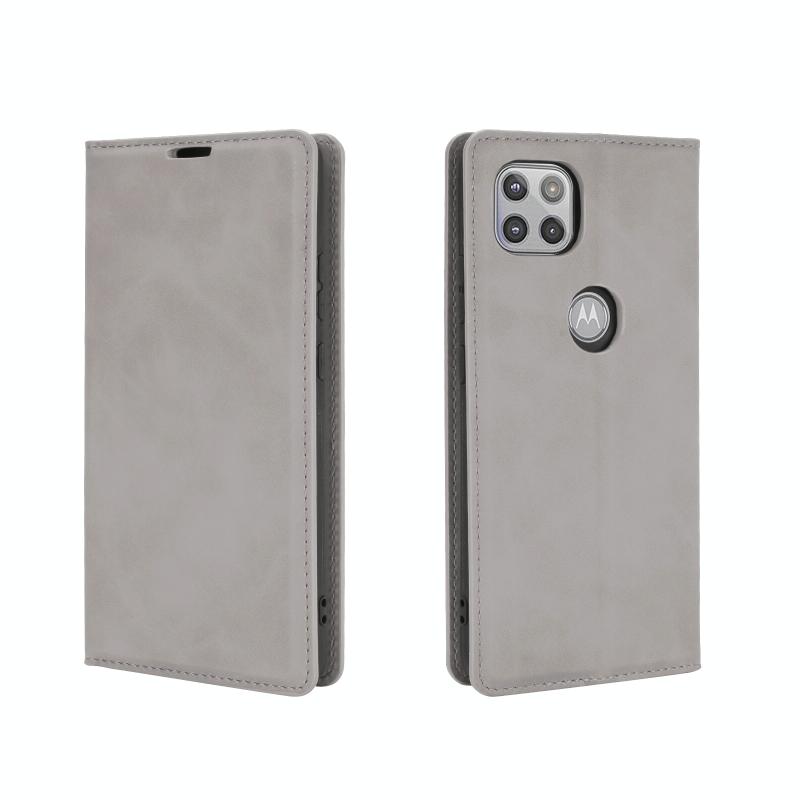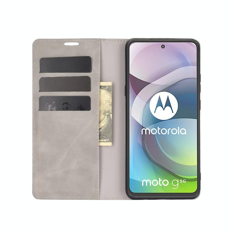 For Motorola Moto G 5G Retro-skin Business Magnetic Suction Leather Case with Holder & Card Slots & Wallet(Grey)