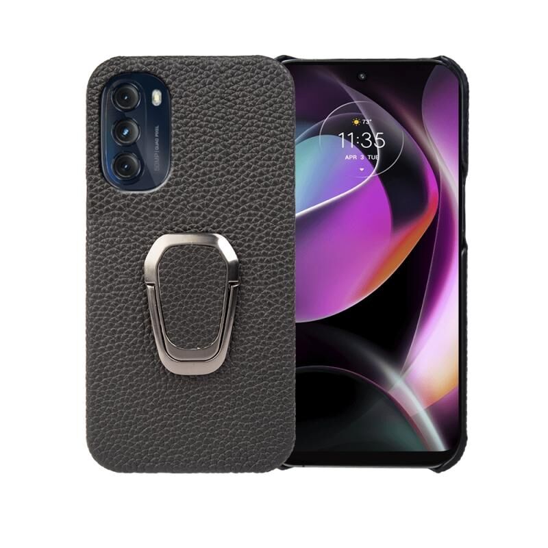 Θήκη κινητού τηλεφώνου από γνήσιο δέρμα με υφή λitchi και δακτύλιο στήριξης για Motorola Moto G 5G (Μαύρο)