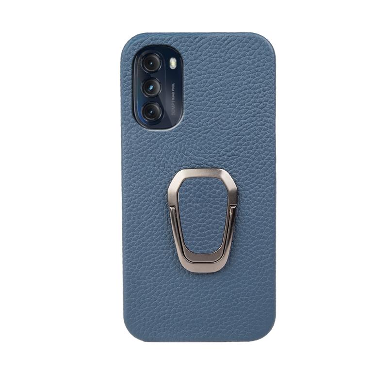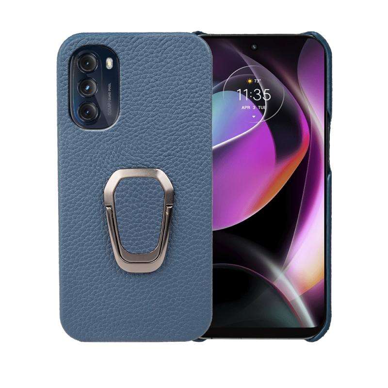 For Motorola Moto G 5G Ring Holder Litchi Texture Genuine Leather Phone Case(Blue)