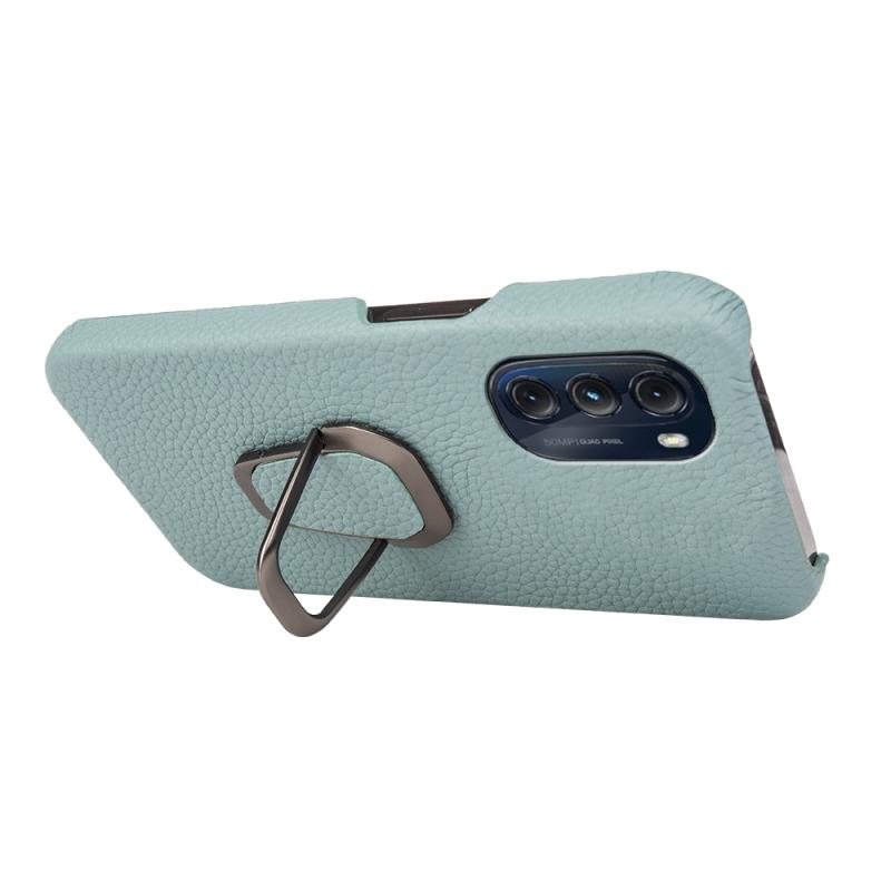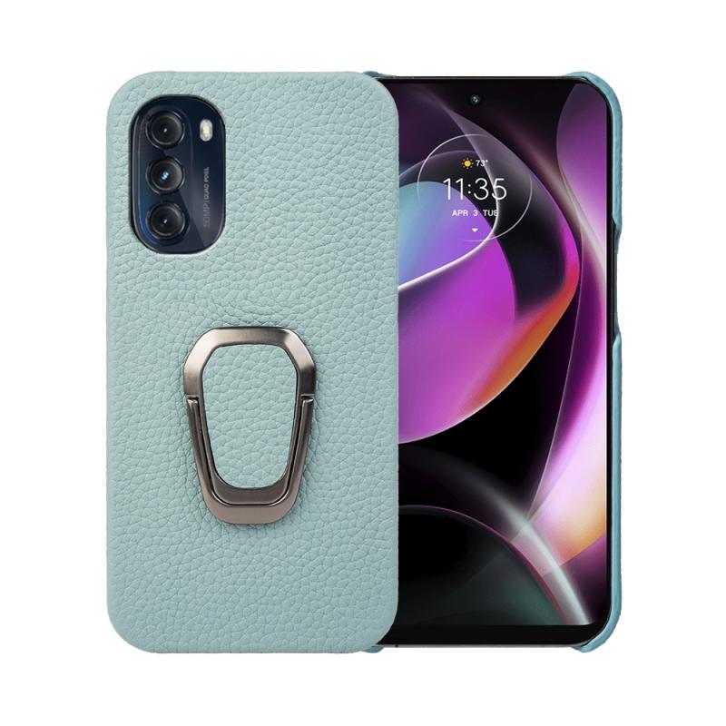 For Motorola Moto G 5G Ring Holder Litchi Texture Genuine Leather Phone Case(Cyan)