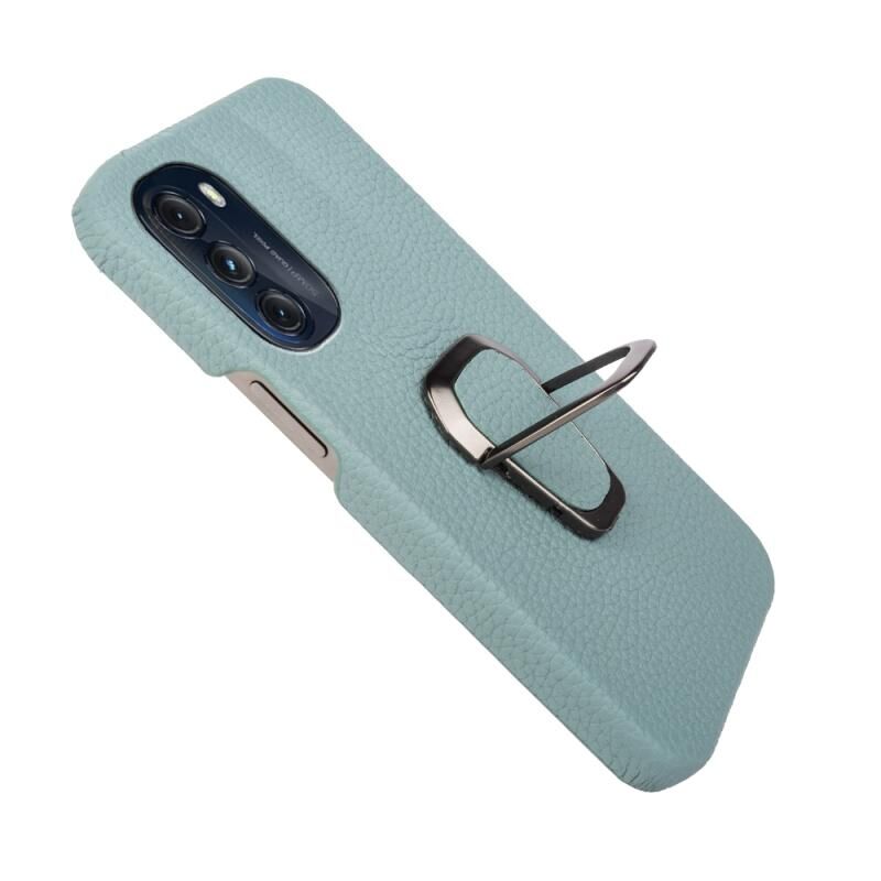 Θήκη κινητού τηλεφώνου από γνήσιο δέρμα με υφή λitchi και δακτύλιο στήριξης για Motorola Moto G 5G (Κυανό)