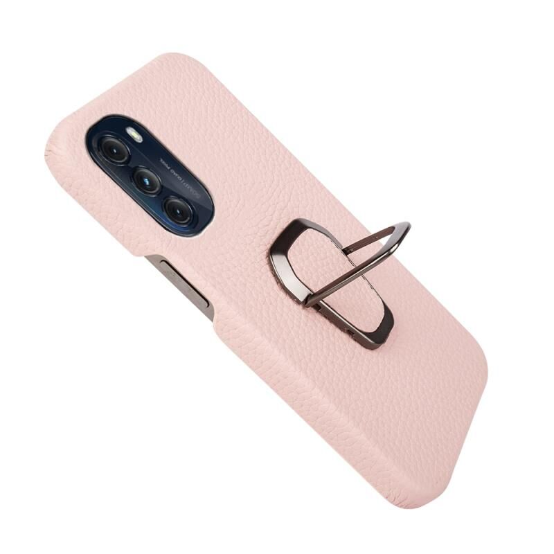 Θήκη κινητού τηλεφώνου από γνήσιο δέρμα με υφή λitchi και δακτύλιο στήριξης για Motorola Moto G 5G (Μαύρο)