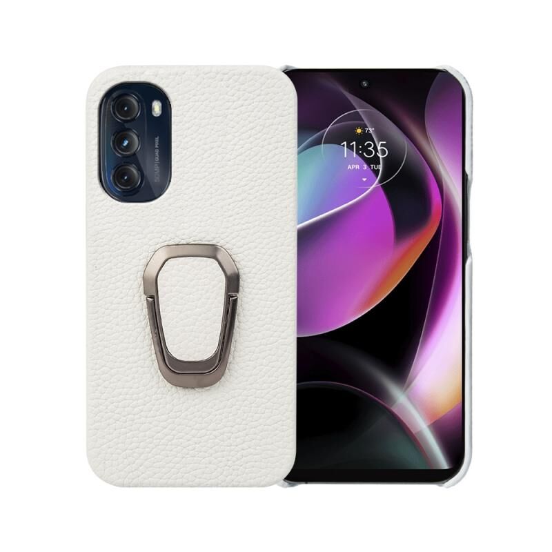 Θήκη κινητού τηλεφώνου από γνήσιο δέρμα με υφή λitchi και δακτύλιο στήριξης για Motorola Moto G 5G (Μαύρο)
