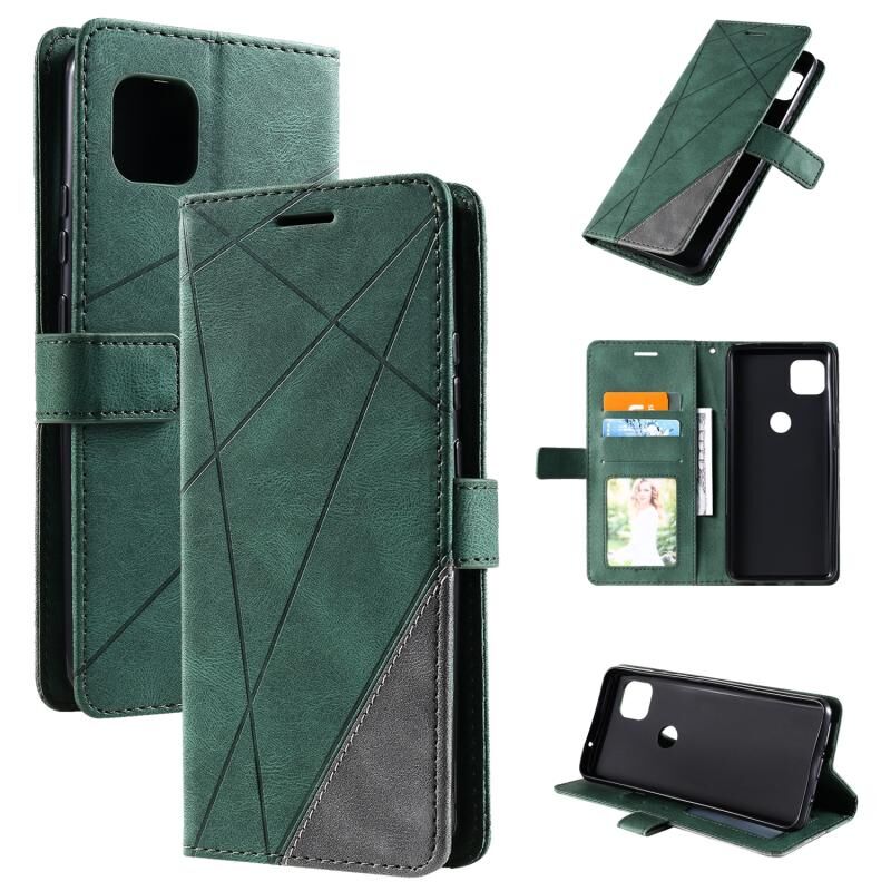 Για το Motorola Moto G 5G Skin Feel Splicing οριζόντια Flip δερμάτινη θήκη με υποδοχές για κάρτες & πορτοφόλι & πλαίσιο φωτογραφιών (πράσινο)