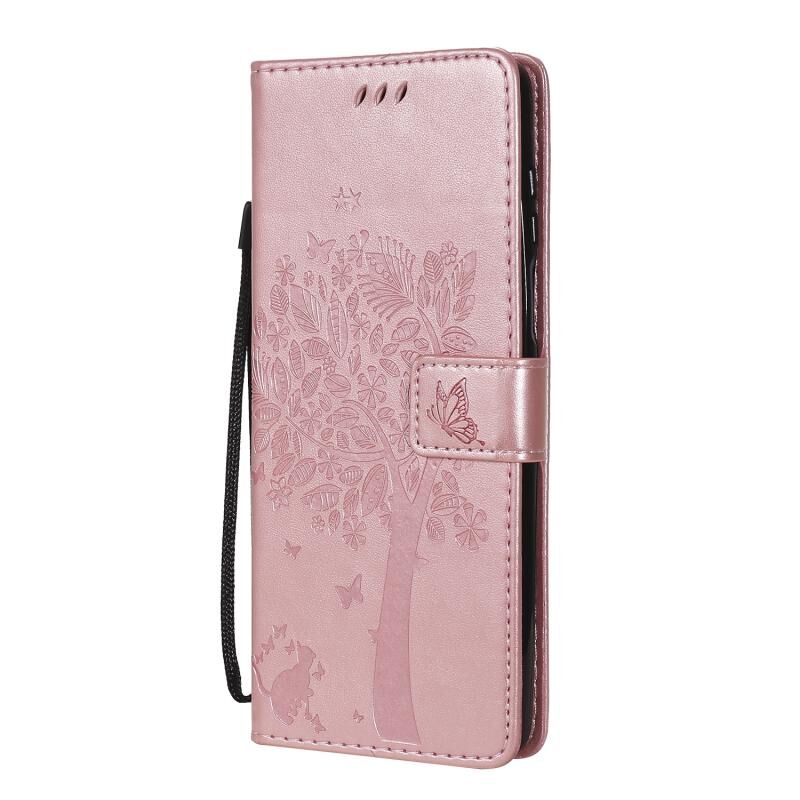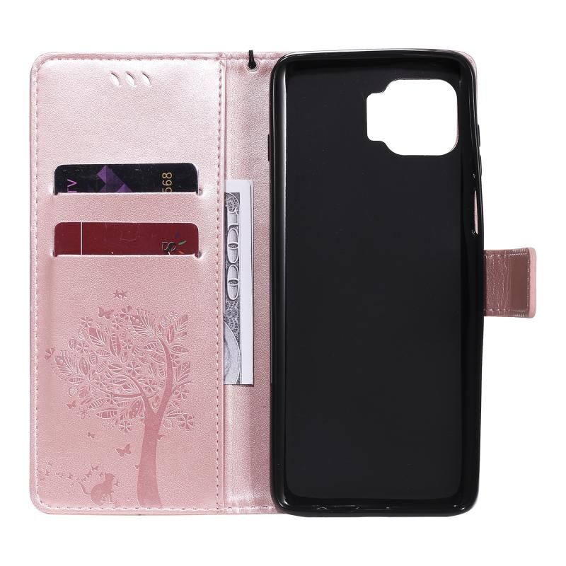 Θήκη για Motorola Moto G 5G με σχέδιο Δέντρου & Γάτας, εκτυπωμένη με θερμοτύπηση, οριζόντια αναδιπλούμενη από δερματίνη PU με βάση στήριξης & θήκες για κάρτες & πορτοφόλι & κορδόνι (Μπλε)