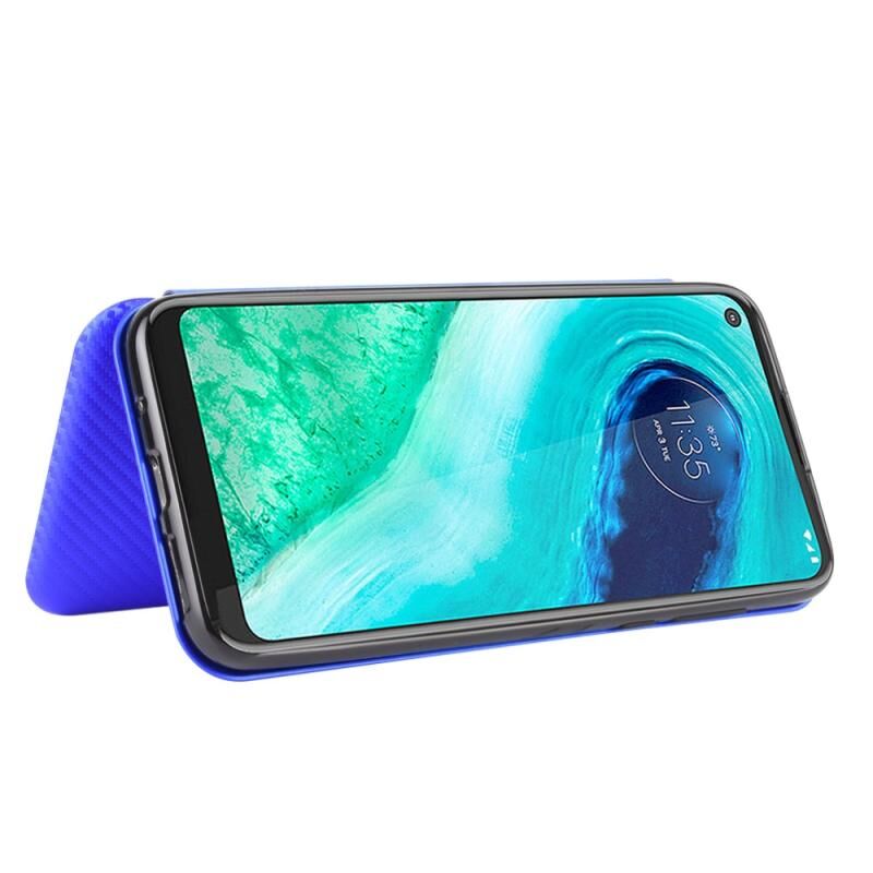 Θήκη για Motorola Moto G Fast με υφή ανθρακονήματος, οριζόντια, αναδιπλούμενη, από TPU + PC + Δερματίνη PU με κορδόνι & θήκη για κάρτες (Ροζ)