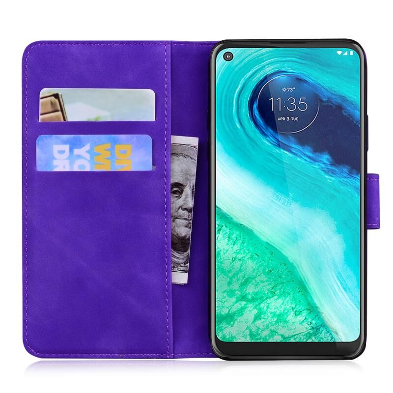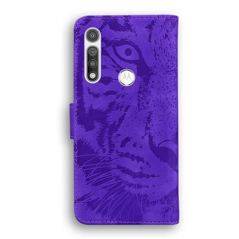 Θήκη δέρματος οριζόντιας αναδίπλωσης με ανάγλυφο σχέδιο τίγρης για Motorola Moto G Fast με βάση & υποδοχές καρτών & πορτοφόλι (Μαύρο)