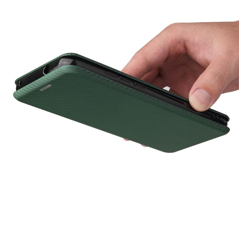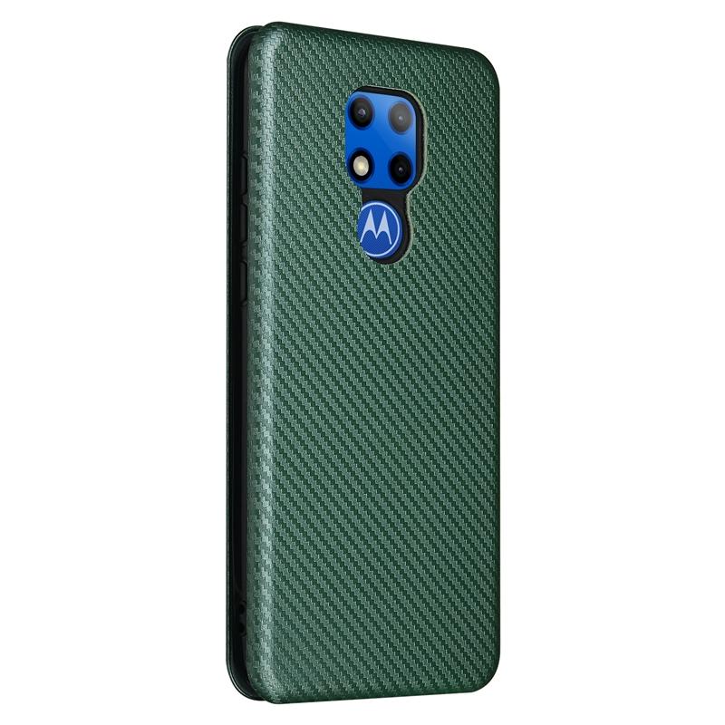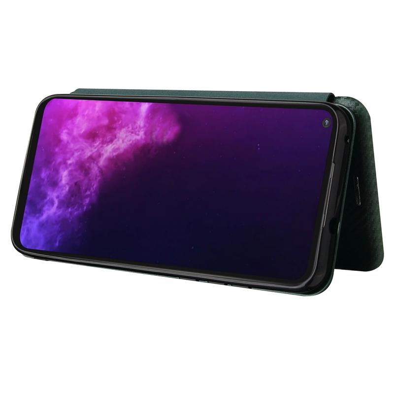 Θήκη οριζόντιας αναδίπλωσης για Motorola Moto G Play (2021) με υφή ανθρακονημάτων, κατασκευασμένη από TPU + PC + Δερματίνη PU και υποδοχή για κάρτες (πράσινο)