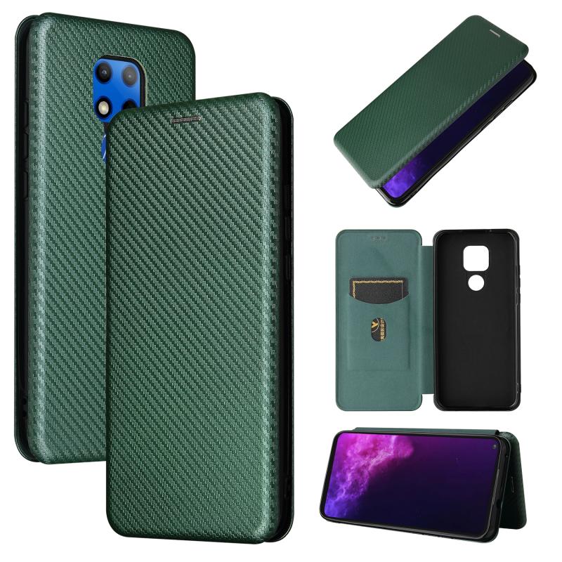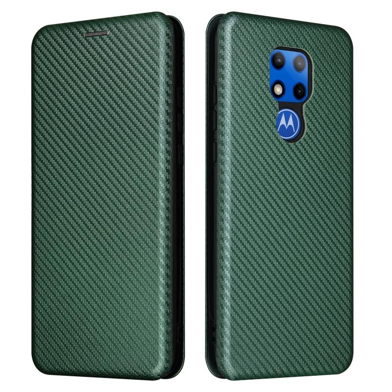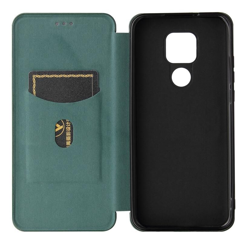 Θήκη οριζόντιας αναδίπλωσης για Motorola Moto G Play (2021) με υφή ανθρακονημάτων, κατασκευασμένη από TPU + PC + Δερματίνη PU και υποδοχή για κάρτες (πράσινο)