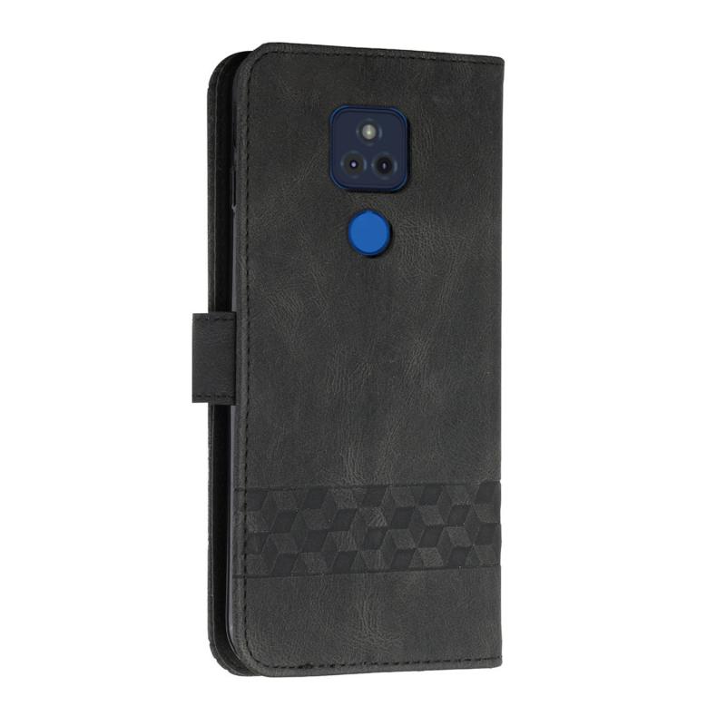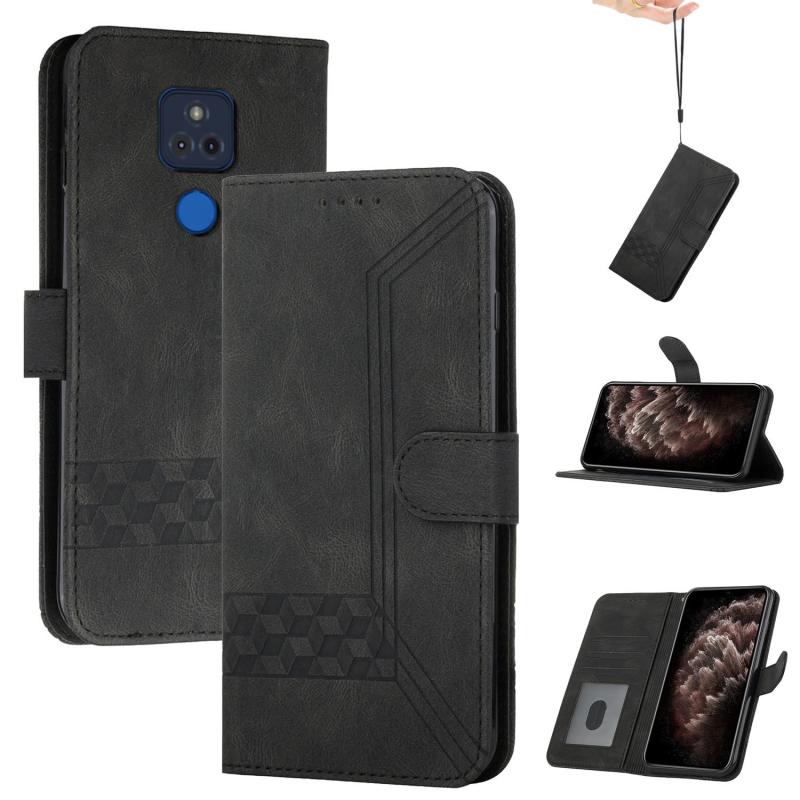 For Motorola Moto G Play 2021 Cubic Skin Feel Flip Leather Phone Case(Black)