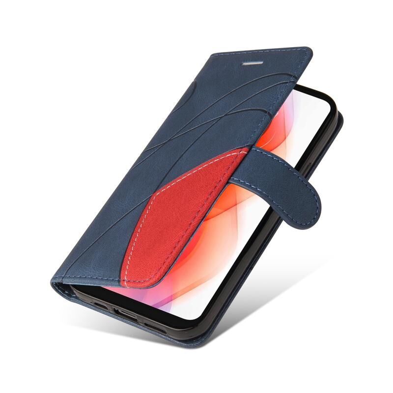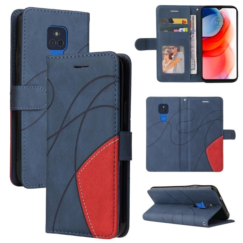 Για Motorola Moto G Play 2021 Διπλό χρώμα Splicing οριζόντια Flip PU δέρμα υπόθεση με θήκη & υποδοχές για κάρτες & πορτοφόλι (μπλε)