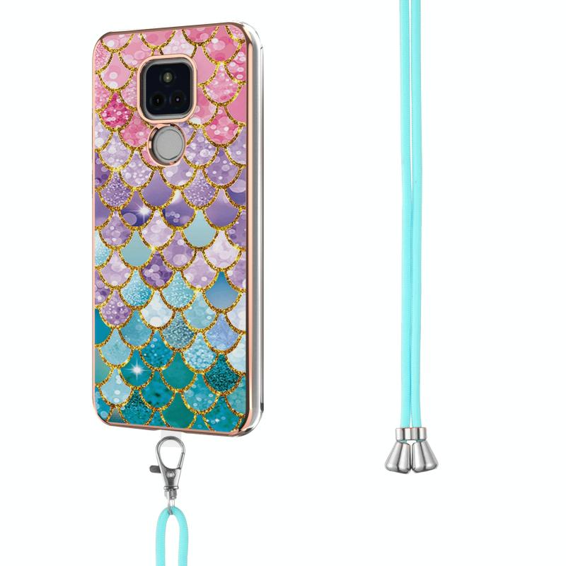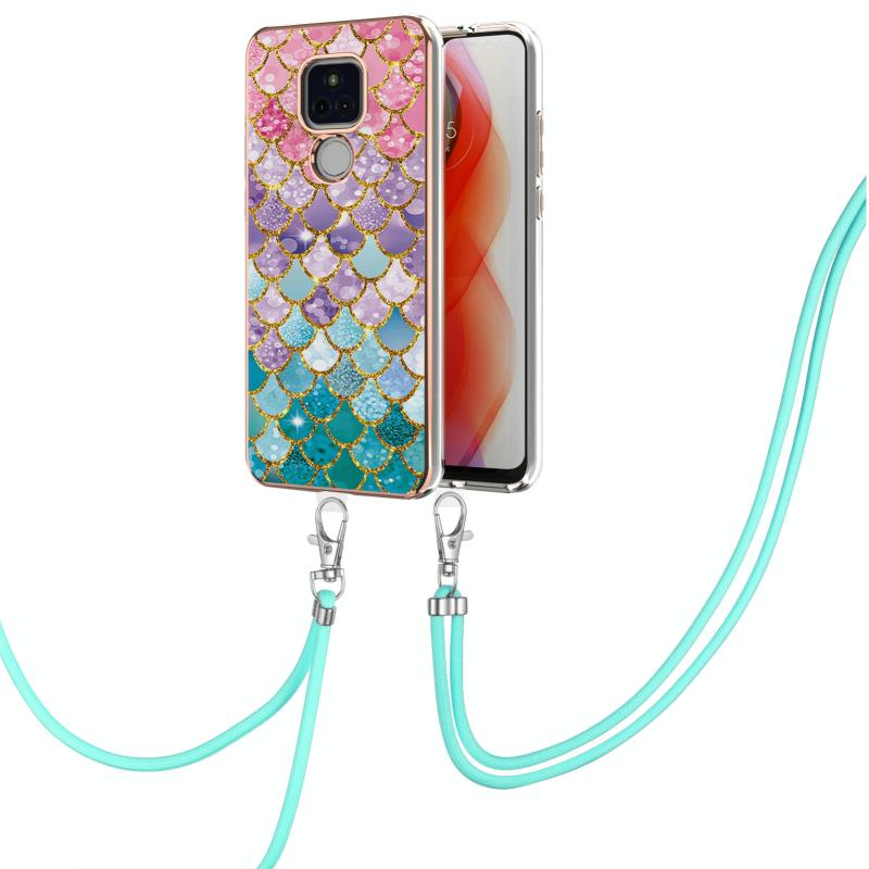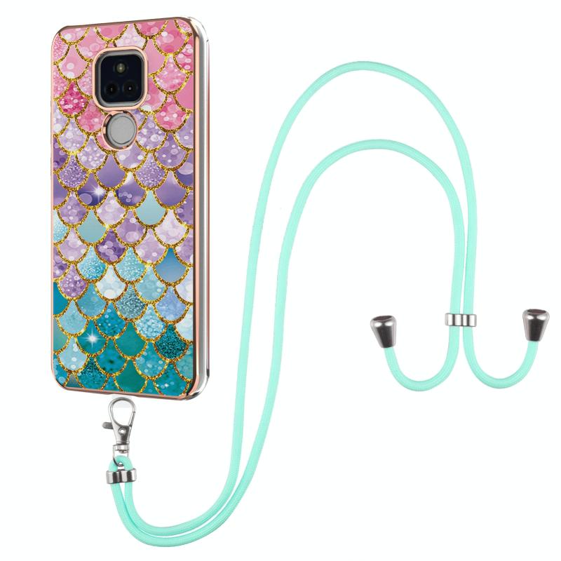 For Motorola Moto G Play 2021 Electroplating Pattern IMD TPU Shockproof Case with Neck Lanyard(Colorful Scales)