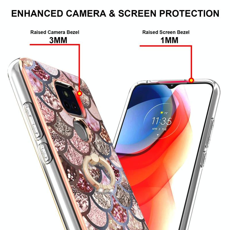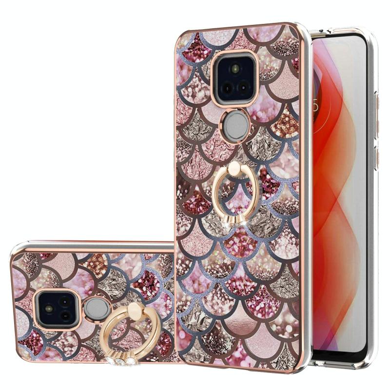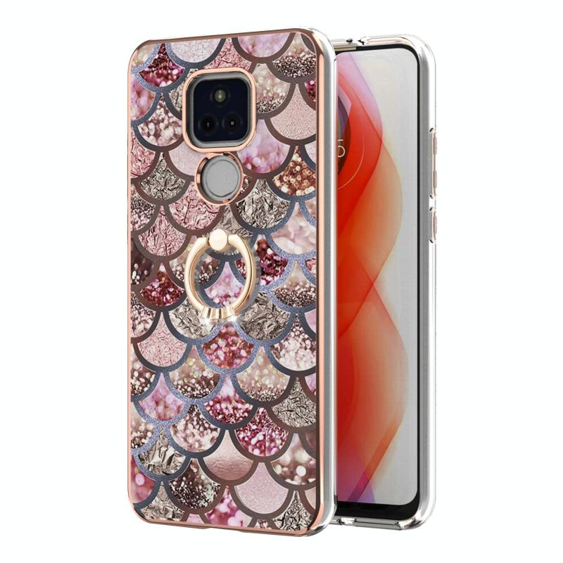 Θήκη για Motorola Moto G Play 2021 με σχέδιο επιμετάλλωσης IMD, από TPU ανθεκτικό στους κραδασμούς με δαχτυλίδι στήριξης και ρητίνες (Ροζ Λέπια)