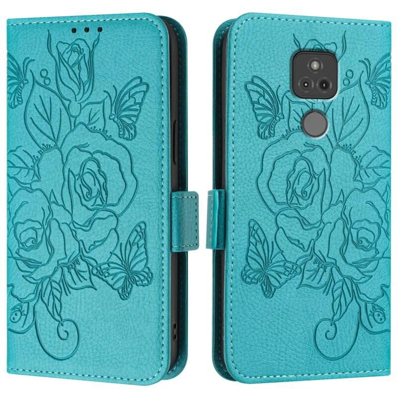 Για Motorola Moto G Play 2021 Ανάγλυφο Rose RFID Anti-theft Δερμάτινη θήκη τηλεφώνου (γαλάζιο)