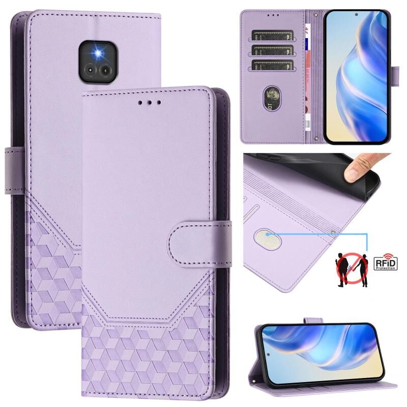 Για Motorola Moto G Play 2021 Honeycomb ανάγλυφη RFID δερμάτινη θήκη τηλεφώνου (ανοιχτό μοβ)