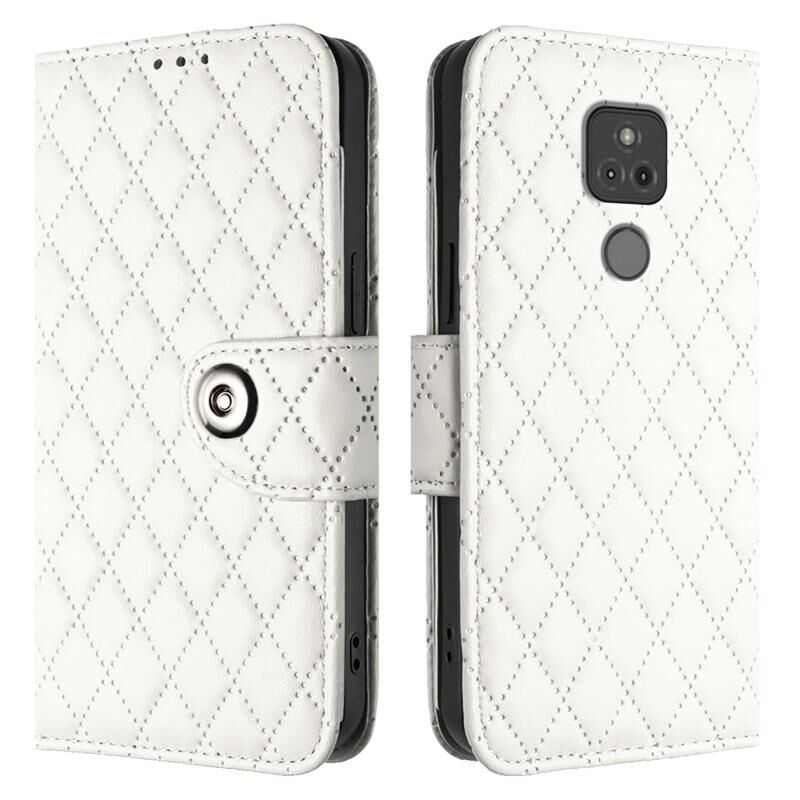 Για Motorola Moto G Play 2021 Rhombic Texture Flip δερμάτινη θήκη τηλεφώνου με κορδόνι (Λευκό)