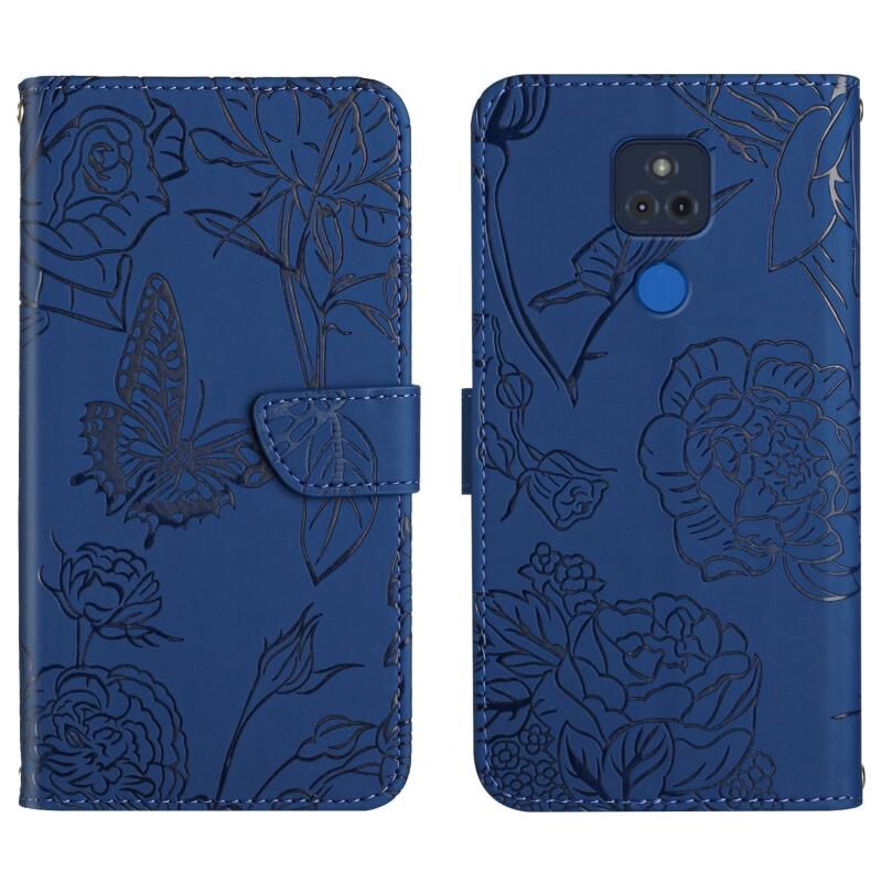 Θήκη τηλεφώνου από δέρμα με ανάγλυφο σχέδιο πεταλούδας και παιώνιας για Motorola Moto G Play 2021 (Κόκκινο)