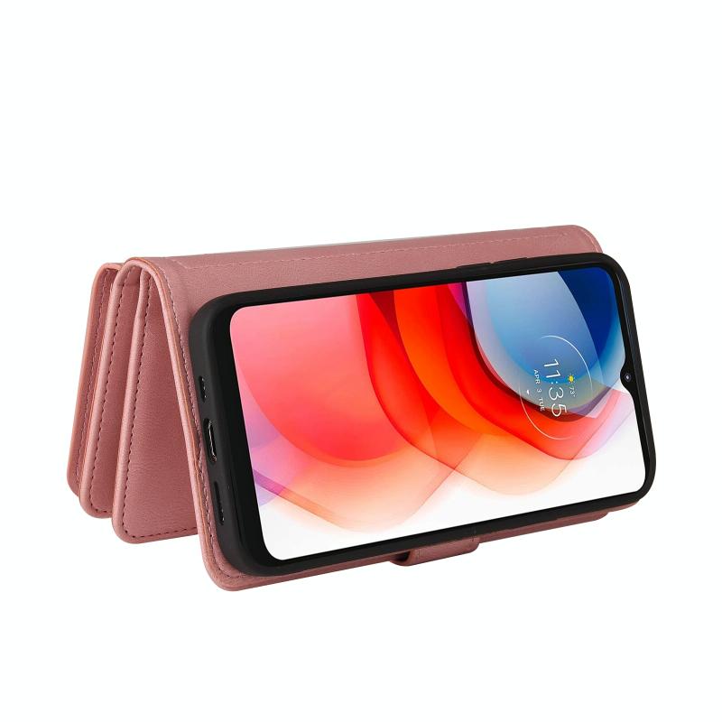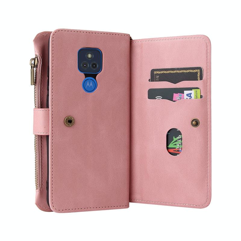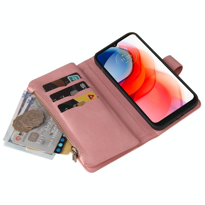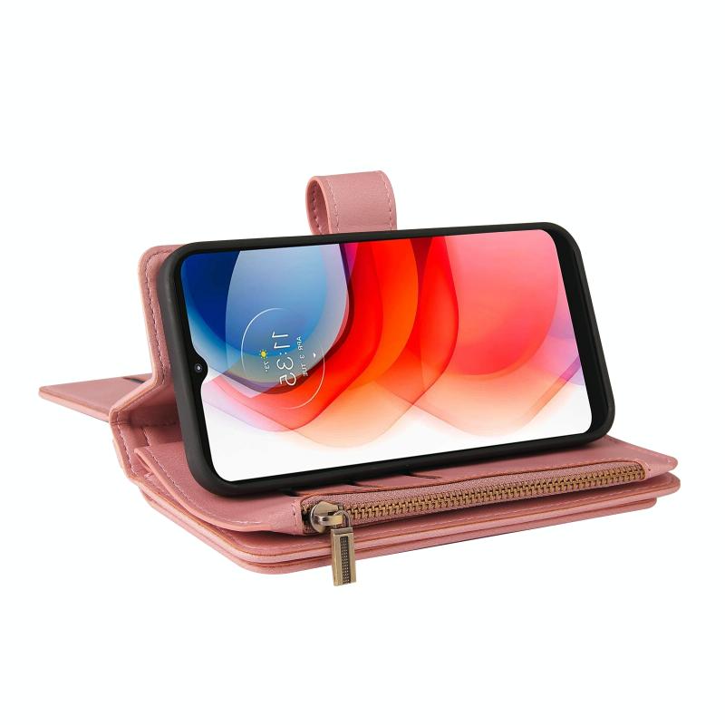 For Motorola Moto G Play (2021) Skin Feel PU + TPU Horizontal Flip Leather Case With Holder & 15 Cards Slot & Wallet & Zipper Pocket & Lanyard(Pink)